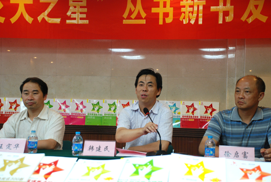 照片2 上海交通大学出版社社长韩建民(中)主持新书发布会并讲话 照片3 教育部基教一司副司长、教育学博士王定华出席新书发布会