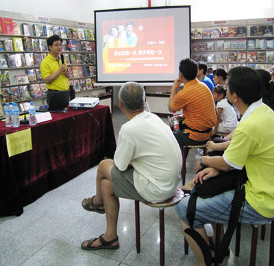 8月8—9日,中国家长教育工程、智慧家长俱乐部发起人,《智慧家长教育丛书》作者郑委在亚运村书店和新华书店小庄分店举办了两场有关家长教育的讲座。讲座从家长自身修炼成长的角度出发,为当下的家庭教育提供切实可行的培养“幸福”孩子的观念和方法。郑委老师通俗幽默的讲座风格和环环相扣的教育逻辑吸引了众多家长前往倾听,更有外地的读者来京专程听讲,感觉受益匪浅。讲座现场互动应答声不断,笑声不断。