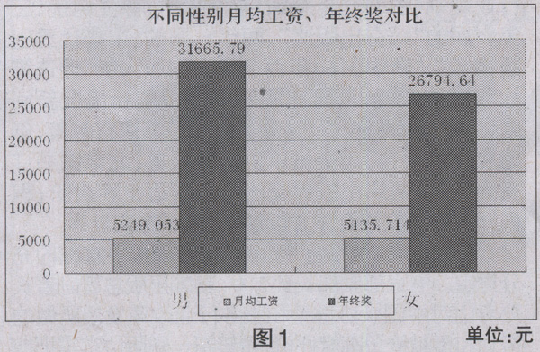 在此次调查回收的128份有效问卷中,囊括了部委社、教育社、大学社、科技社、少儿社、文艺社、古籍社、美术社、综合类社、民营公司10大类别出版企业从业者所提供的有效信息,岗位涉及部门负责人、编辑、营销策划、发行业务员、美编、行政人员。需要特别说明的是,由于众所周知的原因,受访者总数还是较为有限,有些受访者所填写的数据或为概数甚至为零,但结合记者日常采访工作了解的情况来看,每份问卷的背后,都较为真实的反映了其所代表的类别人群的薪酬、福利待遇情况以及其真实的想法。薪酬待遇问题也自然成为此次调查最受关注的选项,不少受访者均私下打探自己可能属于哪个档次。据统计,此次所有受访者的月均工资为5181.53元,平均年终奖为2.88万元,高于国家统计局日前公布的职工收入。其中,男性受访者占58人,其平均月薪为5249.05元,年终奖约为3.17万元;女性受访者占70人,平均月薪为5135.71元,年终奖约为2.68万元。与去年调查结果相比,女性从业者在从业人数上仍占较大优势,月均工资略低于男性从业者,年终奖则相差5000元。整体薪酬而言,男性仍高于女性。(见图1)