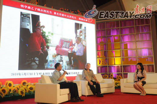 8月20日下午4:45,在上海书展现场——上海展览中心中央大厅隆重举行“走近钱学森——纪念钱学森百年诞辰”活动,知名传记作家、《钱学森》作者叶永烈,钱学森之子钱永刚亲临会场,携带《钱学森》、《走近钱学森》两本翔实的钱学森传记,向钱学森这位伟大的科学家致以深深的敬意和长远的追思。叶永烈与钱学森在接受访谈中,揭秘《钱学森》一书的出版始末,让读者分享该书的出版心得。访谈结束之后,《钱学森》一书举行了签售活动,叶永烈和钱永刚共同为广大读者签名留念。盛况空前,场面火爆,等候签名的队列从上海展览中心楼下一路延伸至二楼,绕着楼梯拐了几个弯。