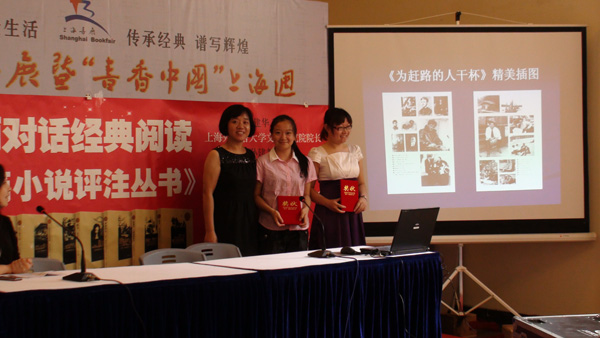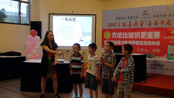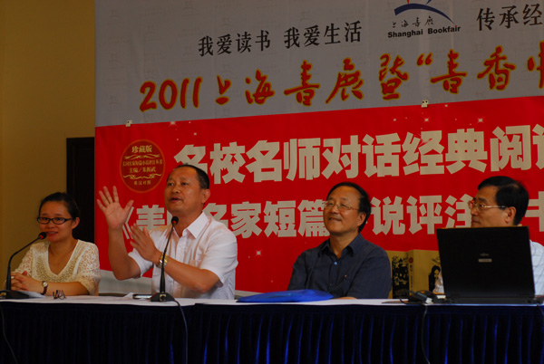 (美国名家短篇小说评注丛书主编朱振武教授的诙谐发言,引起了上海外国语大学的虞建华教授和复旦大学孙建教授的会心微笑)(李辉老师与小朋友做数学小游戏)