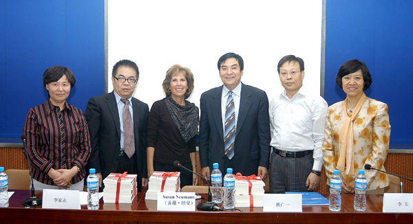 2011年9月23日,儿童贫困与国家学前教育政策学术报告会暨《学前教育改革与国家反贫困战略》中文版图书首发式在北京师范大学举行。该书原作者——美国教育部原部长助理、美国密歇根大学教授苏珊·纽曼博士、北京师范大学教育学部副部长李家永、学前教育研究所所长霍力岩等专家出席了首发式。我社所广一社长、李东总编辑、幼儿教育编辑部白爱宝主任、总编室孙袁华主任以及相关人员参加了此次活动。 在首发式上,李家永副部长在讲话中高度赞扬了我社专业的选题眼光与严谨的工作作风,并指出,此书具有很高的学术价值及实践意义,其中的学前教育改革战略虽然是来自美国的经验,但是对于促进我国的学前教育改革与发展同样具有重要的借鉴价值。所广一社长代表教科社感谢了北京师范大学教育学部等各方为图书出版所做的努力,并向北京师范大学教育学部赠送了该书。此外,苏珊·纽曼教授围绕本书,就如何促进贫困儿童的早期发展做了精彩的演讲。在近年来中国政府将学前教育的发展放在新的战略高度的背景下,相信本书的出版发行,将对我国学前教育发展战略决策带来有益的启发。