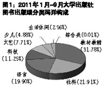 同时,在畅销书影响日渐深远的图书市场中,除强化学术为本和服务教育的出版特色外,一部分实力较强、对市场较为敏感的大学出版社已开始涉足大众阅读板块,这一趋势反映在图书门类构成上,表现为文艺、少儿等大众门类图书所占比重的增长:今年前三季度,大学出版社在文艺类图书板块投入的品种比重占到9.06%,相应创造了7.71%的码洋;对少儿图书的品种投入占3.14%,并赢得了4.88%的码洋比重。