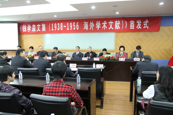 本网讯 2011年11月18日上午,在第24届中国大学出版社图书订货会举办期间,为纪念人民科学家钱学森诞辰100周年,上海交通大学出版社隆重举行了《钱学森文集(1938~1956海外学术文献)》(中、英文版)首发式。国家新闻出版总署副署长邬书林,钱学森之子钱永刚,教育部社科司副司长徐维凡,教育部社科司出版处处长林丽,大学版协理事长王明舟,大学版协副理事长魏小波、刘军、宗俊峰、陆银道,大学版协副秘书长汪春林、毕研林、岳凤翔等出席。活动由上海交通大学出版社社长韩建民主持。