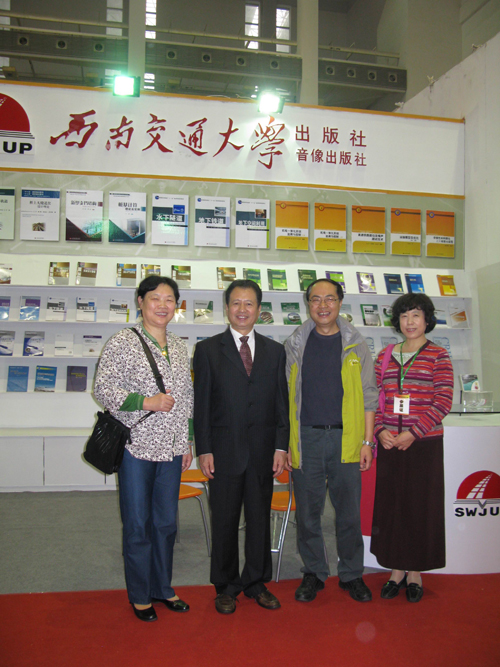 2011年11月18日上午,参加第24届全国大学出版社图书订货会的教育部社科司副司长徐维凡、教育部社科司出版管理处处长林丽、中国大学出版社协会副理事长魏小波等领导同志莅临西南交通大学出版社展位视察并指导工作。 上图: 左二:教育部社科司副司长徐维凡 右一:教育部社科司出版管理处处长林丽 左一:中国大学出版社协会副理事长魏小波 右二:西南交通大学出版社社长阳晓