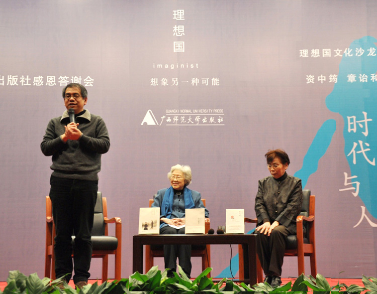 左起:杨照、资中筠、章诒和广西师范大学出版社社长何林夏广西师大出版社总编辑刘瑞琳