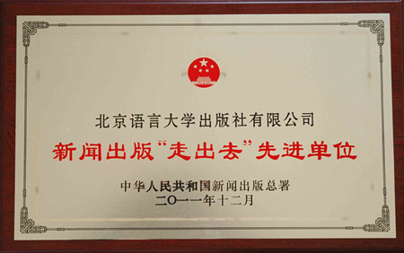 12月23日,《大中华文库》出版工程暨新闻出版“走出去”先进单位表彰大会在北京人民大会堂举行,北语社荣获新闻出版“走出去”先进单位称号。中共中央政治局常委李长春,中共中央政治局委员、中央书记处书记、中宣部部长刘云山,中共中央政治局委员、国务委员刘延东等党和国家领导人出席表彰大会。北京语言大学副校长、北语社社长兼总编辑戚德祥教授代表出版社领奖。此次评选表彰经中央批准,共表彰了4家《大中华文库》出版工程先进单位和44家在版权输出、实物出口、数字出版产品出口、期刊走出去、印刷服务出口、企业海外投资、海外销售渠道拓展等领域作出突出成绩的新闻出版单位,该奖项为我国新闻出版“走出去”工作的最高奖项。 李长春发表重要讲话。他指出,党的十七届六中全会提出了坚持中国特色社会主义文化发展道路,努力建设社会主义文化强国的战略任务,对提高文化开放水平、推动中华文化走向世界作出了新的部署。希望全国新闻出版战线认真贯彻党的十七届六中全会精神,按照高举旗帜、围绕大局、服务人民、改革创新的总要求,进一步解放思想、实事求是、与时俱进,在牢牢把握正确导向、坚持社会主义先进文化前进方向、建设社会主义核心价值体系方面取得新进展,在进一步深化改革、构建富有生机活力的体制机制、解放和发展文化生产力、做大做强出版业方面迈出新步伐,在推进文化与科技相融合、催生新的文化业态、抢占出版科技制高点方面取得新突破,在打造一批有实力有国际竞争力的大型出版发行企业、积极开拓国际文化市场方面取得新成效,为推动社会主义文化大发展大繁荣、建设社会主义文化强国、实现中华民族伟大复兴作出新的更大贡献。李长春希望受到表彰的先进单位进一步增强责任感和使命感,再接再厉、开拓创新,更好地发挥示范表率作用,为加快文化改革发展、推动中华文化走向世界再立新功。 中共中央政治局委员、中央书记处书记、中宣部部长刘云山也作了重要讲话。 “十一五”期间,北语社组织实施“汉语教材国际推广计划”,共推出了15大系列包含50个产品线1000余种教材的汉语国际推广项目,满足世界不同类型学习者的学习需求。截至2011年底,北语社有效输出版权累计1060种,连续多年版权输出位列全国单体社第一,覆盖了包括美国、德国、法国、俄罗斯、韩国、日本、瑞典、越南、印度尼西亚、泰国、新加坡、蒙古等20多个国家,版税收入近1000万元。实物出口方面,北语社拥有覆盖57个国家和地区的200余家家代理经销客户,连续三年原版图书海外销售排名全国第一,2011年实现实物出口4000余万码洋。荣获“全国对外推广工作综合考核”全国单体出版社第一名,当选“中国图书对外推广计划工作领导小组成员单位”,被评为国家文化出口重点企业、版权贸易十佳单位、中国图书对外推广先进单位、全国版权输出先进单位等,被誉为“走出去”做得最好的单位之一。 《新闻联播》、新华网、人民网等多家媒体对此次表彰活动此进行了报道。