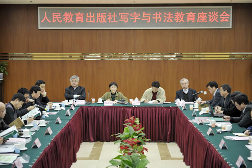 2012年2月14日,为落实《教育部关于中小学开展书法教育的意见》,推进写字和书法教育的深入进行,人民教育出版社联合中国书法家协会等有关单位,举办了“人民教育出版社写字与书法教育座谈会”。会议的主要议题是:针对开展写字与书法教育工作广泛听取意见;探讨人民教育出版社广泛借助社会各界优势资源开发写字与书法图书的途径;商谈与中国书法家协会的战略性合作事宜。会上,人民教育出版社总编辑韦志榕向与会代表介绍了人教社的基本情况和在写字与书法教育方面的工作和设想。中国书法家协会党组书记赵长青、中央国有大型企业巡视组组长滕久明、全国政协常委苏士澍、中国动漫集团党委书记李扬、人教社副社长罗先友等出席并发言。人教社副总编辑魏运华主持座谈会。 人教社一直非常重视写字和书法教育,研发和编写了一系列写字、书法教材和相关图书。改革开放以来,人教社编辑出版的《写字教材》等系列图书重印达几十次,覆盖全国中小学校。2011年8月,根据教育部《关于中小学开展书法教育的意见》,人教社发挥自身优势编写的《义务教育课程标准实验教科书·写字教材》(庹氏回米格字帖),受到社会广泛好评。 目前,为了更好地推进写字与书法教育事业,人教社已将写字与书法类图书研发出版列为全社“十二五”规划重点项目之一,并正在与中国书法家协会及其他书法教育界人士展开沟通,以期在最短的时间内再推出一批优质写字与书法教材和大众图书,以满足中小学生和书法爱好者的需求。