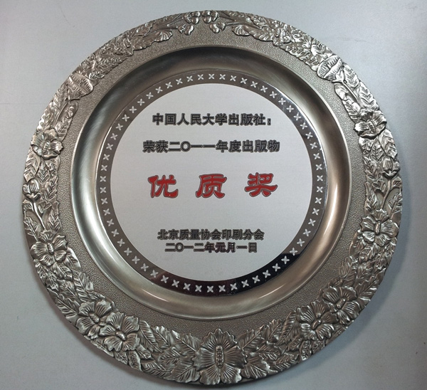 2012年3月21日,由北京质量协会印刷分会、北京市印刷工业产品质量监督检测站共同召集的“2012年质量工作会议”在京召开。会上,人大社荣获“2011年度出版物优质奖” ,196个图书品种被评为“2011年度北京出版物印制优质产品”。