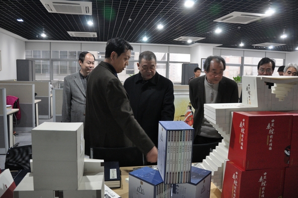 3月21日下午,陕西省人大常委会委员、教科文卫委员会主任委员秦天行率领的省人大调研考察组一行14人在省新闻出版局副局长吴丰宽等领导的陪同下,莅临陕西师范大学出版社及西安曲江出版传媒股份公司视察指导工作。总社董事长高经纬、社长刘东风、总编辑赵豪迈、副总编辑屈炳耀、屈瑞新等陪同并作相关情况汇报。 考察组一行听取了汇报、参观了陈列室、视察了办公区,全面了解了陕西师范大学出版社的发展历程及出版现状,秦天行主任特别询问了国家文化大发展战略给出版企业带来的新机遇,及总社入驻曲江成立股份公司后出现的新变化。考察组成员还非常关心总社精品图书的出版宣传开发历程,对陕西师范大学出版社特别重视整理开发陕西文化图书的工作表示了充分肯定,赞扬陕西师范大学出版社表现出的高度的文化使命感和社会责任感。