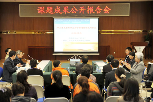 4月26日,人民教育出版社召开了国家社科基金“十一五”规划国家一般课题“中小学生学科学业评价标准的研究与开发”课题成果公开报告会。人民教育出版社总编辑韦志榕主持了报告会。课题总负责人、人教社原总编辑徐岩编审从研究问题、研究设计、主要研究成果及本课题研究的特色与创新四方面介绍了研究总报告,中学英语、生物、地理、小学数学四个子课题分别做了汇报。北京师范大学林崇德教授、江西省教研室黄建国主任、长春实验中学迟学为校长三位专家对本课题作了评议,并提出了宝贵的意见和建议。党委书记郭戈,副总编辑魏运华、郑旺全,总编辑助理赵占良、张廷凯及来自媒体的记者、社内外人员近百人与会。 据悉,“中小学生学科学业评价标准的研究与开发”课题于2006年10月底正式启动,目的是开发与课程标准相配套的中小学生各学科学业评价标准(academic assessment standards)。该研究基于发展心理学、课程与教学评价、教育与心理测量、教育心理学等领域的相关理论和研究成果,希望开发出直接用于指导教师进行学生评价的文本。数年来,人民教育出版社课程教材研究所的研究人员多学科同时推进,在义务教育阶段语文、数学、英语、品德与社会、小学科学、俄语、物理、化学、生物、思想品德、历史、地理、信息技术学业评价标准的研究和开发上取得了初步的研究成果。该项研究将进一步推动对从日常学业评价到大规模学业评价到高利害学业评价的整个学业评价体系的进一步改革。