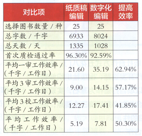 [摘要] 将信息技术引进传统的编辑工作过程,究竟是否能够在保证质量的前提下系统提升工作效率?笔者依托中央广播电视大学出版社编辑中心,开展“数字化编辑应用模式研究”课题,组织包括各个学科的13名编辑(不含管理、排版和校对人员),用实证研究和对比研究的方法,跟踪研究一年多,对比分析近60本图书的编辑加工过程和质量检查结果,基本可以得出结论:数字化编辑有望彻底改变传统的编辑工作方式,并系统提升编辑加工质量和效率。 [关键词] 编辑数字化图书