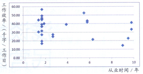 图1:数字化编辑工作模式下编辑从业时间与工作效率散点图