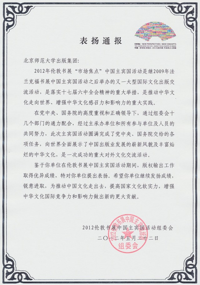 作为国际出版界、文化界的盛会,一年一度的伦敦书展4月16日拉开帷幕。以“市场焦点”主宾国身份亮相伦敦书展的中国,展馆面积超过2000㎡,创历届伦敦书展主宾国展馆面积之最,100余家出版社携1万余种中文图书参加展览。这是继2009年中国成功举办法兰克福书展主宾国活动后,举办的又一次大型文化活动,对加快中国文化走出去步伐,提高文化软实力具有重要意义。出版集团领导高度重视此届伦敦书展工作,第一次组团参加了伦敦书展。出版集团在伦敦书展上所承办的四项主题活动都获得了圆满成功,版权的输出和引进取得了突破性进展。4月16日,新闻出版总署署长柳斌杰专程到北师大出版集团展台视察,并看望了参展人员。 北师大出版社与牛津大学出版社“社长对话”圆满成功。牛津大学出版社是世界上规模最大、影响最广的大学出版社。4月18日,北京师范大学出版社与英国牛津大学出版社,在伦敦书展上举办了“社长对话”活动。牛津大学出版社社长Nigel Portwood出席了“对话”活动,北师大出版社社长杨耕教授与牛津大学出版社国际事务总裁Neil Tomkins进行了面对面的交流。国外出版业同行踊跃参与,会议室座无虚席。中英两家知名大学出版社社长的对话,探讨了大学出版社的使命及其与所依附大学的关系,交流了在不同国家体制中大学出版社的不同运营机制和管理体系,共享大学出版社在学术传播和市场竞争中博弈的经验,直面大学出版社发展中的共同问题。这次“社长对话”活动被列入中国主宾国活动的国家项目,活动圆满成功,产生了良好的学术影响和社会效应。《光明日报》在4月19日的国际新闻版上,以“大学出版社如何成功”为题,对“社长对话”活动进行了专题报道。 与圣智学习集团就《中国教育》(英文版)授权签约活动成功举行。总部设在美国的圣智学习集团在教育研究和专业出版方面享有盛誉。4月18日出版集团总经理杨耕与圣智学习集团全球执行副总裁曼尼尔·古兹曼(Manuel Guzman)在伦敦书展上就《中国教育》(英文版)的授权举行了签约仪式。为了使中国教育“走出去”,让世界了解、认识中国的教育,北师大出版集团与圣智学习集团合作出版中英文版的《中国教育》。《中国教育》由教育部部长袁贵仁教授担纲主编,教育部相关司局负责人主笔撰写,从中国的教育规模、教育投入、教育结构、教育形式、教育的国际交流等方面详尽地展示中国的教育,使世界对中国庞大的教育体系、多层次的教育结构、多类型的教育形式,有了更加深入、全面的认识和了解。《中国教育》的出版,向全世界宣传了中国的教育理念,展示中国教育的风采,促进中国教育和国际教育的合作与交流。《中国教育》授权签约活动也被列入中国主宾国活动的国家项目。 与斯普林格就《综合风险防范系列丛书(7册)》英文授权签约活动成功举行。斯普林格科学与商业传媒集团在欧洲乃至全球居于领先地位,是全球最大的、享有盛誉的科技类出版公司。4月16日,在伦敦书展上,出版集团总经理杨耕与斯普林格CEO 德克·汉克(Derk Haank)就《国际全球环境变化人文因素计划综合风险防范系列丛书》(7册)英文版授权举行了签约仪式。签约仪式由斯普林格中国地区负责人叶路主持,斯普林格副总裁Hubertus Riedesel、斯普林格亚洲有限公司总经理Maurice Kwong出席了签约仪式。这也是在伦敦书展上,中国科技类图书输出到欧美主流出版社册数最多的版权签约。 与西罗·波罗先生就《新马可·波罗游记——追寻祖先的足迹》图书出版合同的签约,以及西罗·波罗先生关于“飞速变化的中国”的主旨演讲活动成功举行。4月18日,出版集团杨耕总经理与西罗·波罗先生就《新马可·波罗游记——追寻祖先的足迹》图书出版合同举行了签约仪式,并邀请西罗·波罗先生根据他近40年对中国的认识和了解做主旨演讲。这次签约及主旨演讲活动被列入中国主宾国“市场焦点”重要项目,新闻出版总署出版管理司司长吴尚之、对外交流与合作司副司长赵秀玲等全程出席了此次活动,吴尚之司长对西罗·波罗先生的主旨演讲给予高度肯定。西罗·波罗·帕德里奇(Siro Polo Padolecchia)先生是马可·波罗家族的后裔,也是国际著名的经济学家和外交家,曾担任意大利驻华大使,现任欧洲市场联合会主席、世界贸易咨询委员会主席等。《新马可·波罗游记——追寻祖先的足迹》记录了西罗·波罗先生沿着祖先的足迹,按照《马可·波罗游记》的写作模式,撰写自己从20世纪60年代开始至今在中国的所见所闻,向世界展示了博大精深的中国文化,一个不断前进、充满包容性的真实的中国。这些内容都反映在了西罗·波罗先生的主旨演讲中。 版权贸易取得突破性进展。在伦敦书展前期,出版集团版权与国际合作部对北师大出版社2009年以来出版的新书进行了认真筛选,以当代中国研究、教育科学(包含心理学)、人文科学、经济学、少儿读物等10个大类为框架,收录了精品图书319种,制作了英文版权书目。同时,根据新闻出版总署对伦敦书展参展书目的具体要求,精选出40册体现出版社特色、反映当代中国社会发展的图书,作为主要参展书目。据伦敦书展期间版权统计,在输出和引进版权方面,北师大出版社有了突破性进展,取得了可喜的成绩:以图书版权形式输出的有《中国教育》、《综合风险防范系列丛书》(7册)、