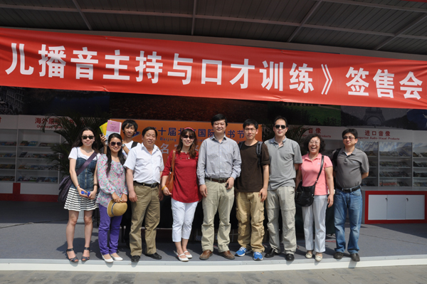 2012年第十届北京国际图书节于5月18日在地坛公园拉开帷幕。本届图书节的主题为“精彩阅读 书香北京”,各家出版机构都争相在这场一年一度的图书盛会上各显异彩。 中国传媒大学出版社一马当先,于图书节首日举办了《少儿播音主持与口才训练》丛书宣传签售会。签售会邀请丛书作者肖弦弈博士至现场与对少儿播音主持和口才训练有兴趣的家长和孩子进行了交流,并现场签名售书。时至正午,烈日当空,但家长们的热情丝毫不减,纷纷提出了在生活中训练孩子语言表达能力时遇到的问题,肖弦弈老师针对这些提问一一作出了详细的解答。签售会在愉快的气氛中落下了帷幕。 签售会上,中国传媒大学出版社市场中心的同事们和丛书的责编都参与了场地布置、活动宣传、产品推广以及后续工作,与前来参加签售会的读者们进行了良好的沟通,为他们答疑解惑,体现了中国传媒大学出版社团结一致、上下一心的良好精神风貌。