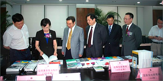 鲁昕副部长视察中职出版事业部时翻阅中职出版的教材