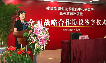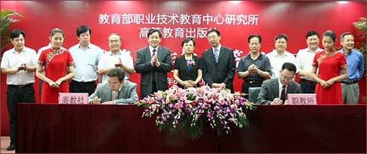 2012年6月18日,高教社与教育部职业技术教育中心研究所在北京富盛大厦签署了全面战略合作协议。教育部党组成员、副部长鲁昕出席签字仪式并作重要讲话。教育部职业教育与成人教育司巡视员、职业技术教育中心研究所所长王继平,高教社社长苏雨恒分别代表职教中心所和高教社共同签署了“合作开展职业教育专业、课程标准研发”、“合作开展职业教育教材和数字教学资源建设”、“合作建设中国职业教育与成人教育网”等领域的合作意见书。