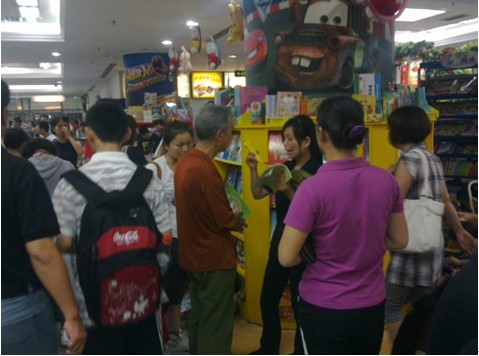 中小学生成为消费主力 记者从北京西单图书大厦了解到,暑假期间学生家长除购买学校指定的教辅书外,多数还会购买相关练习题和书籍,所以近期教辅书籍都被放到了明显区域,且部分柜台将热销教辅书单独开辟展台陈列。想选购外语类图书,只在一个展台上就可以挑到好几本。很多家长发现,教辅书很多被放到了书架中间的大展台上,而这些书籍多数是附近各校的常用教辅材料。记者数了一下在小学外语类教辅书长长的展台前,同时聚集了22位家长和学生在选购,为买一本指定教辅书而选购多本相关教辅书的家长不在少数。经了解,由于很多重点学校学生使用的是数码点读教材,因此暑假期间为扩展阅读,很多中小学生特地来到大型图书商场来选购配套的外语点读图书。