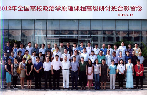 2012年7月12日至13日,北京大学政府管理学院政治学系、北京大学政治发展与政府管理研究所与北京大学出版社在京成功举办了“2012年全国高校政治学原理课程高级研修班”。会议诚邀国内各高校承担本科生和公共管理专业硕士学位(MPA)教育的“政治学原理”课程教学与研究的骨干教师参与研讨,以王浦劬等著的《政治学基础(第二版)》(北京大学出版社2006年版)为主要蓝本,紧扣教学主题,采用专题讲解、难点解疑、示范教学、扩展研讨、名家讲座的形式进行。研修班得到了来自全国各地数十家高校和科研院所的教师和学者们的支持,在为期两天的研修课程中,来自北京大学和国家行政学院的五位主讲老师,围绕着《政治学基础》的授课以及政治学领域的其他议题,与在座的各位老师展开了坦诚而热烈的交流。
