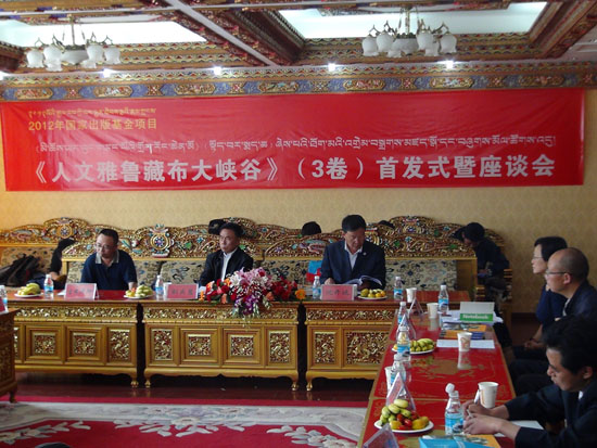 2012年8月19日,由电子科技大学出版社出版的《人文雅鲁藏布大峡谷》(3卷)首发式暨座谈会在西藏文联召开。西藏自治区政协副主席刘庆慧、中共西藏自治区党委宣传部副部长、自治区文联党组书记沈开运、电子科技大学出版社社长郭蜀燕及众多知名的作家、学者出席了仪式。 在座谈会上,刘庆慧对该书给予了高度的评价。他说,这套丛书对深入研究门巴族和珞巴族的历史文化,揭示藏族与门巴族、珞巴族之间唇齿相依、血肉相连的密切联系,维护祖国统一、构建和谐西藏、巩固祖国边防、维护国家主权和领土完整,具有重要的意义。电子科技大学出版社慧眼识宝,能及时捕捉到,并且竭尽全力来筹划、运作并出版这套书,有这样一种担当和眼光,具有前瞻性的考虑,并且还申请到了国家出版基金,确实是难能可贵的,这种精神值得我们学习。对此,他对电子科技大学出版社表示祝贺和感谢!刘庆慧希望,参会的西藏以及内地的相关专家和学者要勇于拼搏、敢于追求,继承和发扬“老西藏精神”,更多地去深入研究、挖掘,大力弘扬门巴族、珞巴族的优秀传统文化,为西藏、为我国的多民族文化传承发展作出新的贡献。 郭蜀燕回忆了此套书的策划及出版过程。她说,这套丛书曾辗转四川、西藏、上海、北京等多家出版社,但有的出版社认为此书没有市场潜力,有的出版社认为此书涉及的西藏民族、宗教及中印边境问题太过敏感,都放弃了出版。然而,一种传承西南边陲历史文化的责任感促使电子科技大学出版社想尽一切办法、克服一切困难,严把政治、民族、宗教等关口,终于使这套具有重要人文历史价值的图书在该社开花结果,与读者见面。 西藏自治区内众多知名作家也纷纷对该书的出版意义作出了肯定。《藏婚》作者羽芊对该书评价道:《人文雅鲁藏布大峡谷》将珞渝文化推向了一个更高的台阶。”因《放生羊》而荣获第五届鲁迅文学奖的次仁罗布说:“《人文雅鲁藏布大峡谷》掀开了大峡谷神秘的面纱,是了解珞渝文化的一面镜子。” 据了解,该书作者罗洪忠多次走进雅鲁藏布大峡谷腹地,用18年时间写就《人文雅鲁藏布大峡谷》,成为中国用散文笔调全景式展示峡谷自然风光、人文风情和奇景奇谜的散文纪实作品第一人。全书分《峡谷风云》、莲花圣地》和《深峡淘金》三卷,全面系统地介绍了雅鲁藏布大峡谷的人文风光和历史风情,该书荣获“2012国家出版基金项目”。 这套丛书开创了雅鲁藏布大峡谷流域人文领域的三项第一:第一本全面展示人文历史的专著,第一本系统展示人文风情的专著,第一本真实展示人文科考成果的专著。这套丛书将成为研究雅鲁藏布大峡谷流域人文不可多得的宝贵资料,对推动雅鲁藏布大峡谷的旅游开发、景区景点保护等,将起到不可估量的作用。