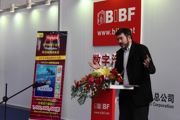 印刷工业出版社社长陈彦女士以及美国Highlights杂志社业务发展副总裁安迪(Mr.Andy)出席会议并致辞。发布会上,由小学生以童话剧的形式,现场演绎了“Highlights最棒的故事集”中妙趣横生的动物故事。