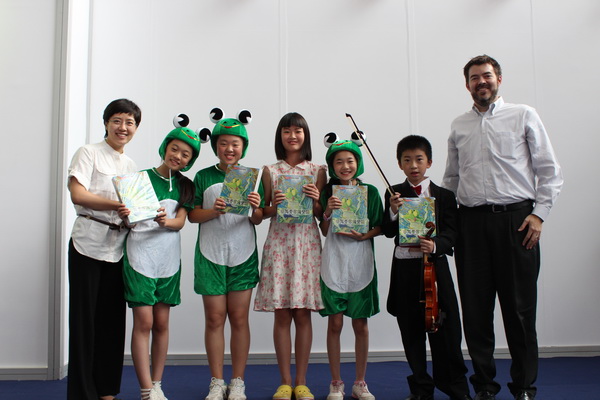 在发布会的最后,来自北京中关村四小五年级的同学现场表演童话剧《青蛙爱德华》。孩子们惟妙惟肖的表演,引来现场中美观众的阵阵笑声和掌声,将会场的气氛推向高潮。