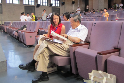 《物理》编辑部王进萍主编向杨振宁先生介绍本书
