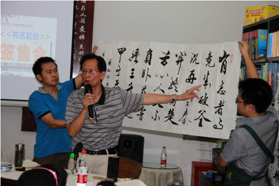 为促进青少年技能培养系列图书的营销,西南财经大学出版社于8月25日15点在光华财经书城光华店书吧举办了《书法起步》新书签售暨书法知识讲座活动。李玉斗副社长以及光华财经书城、编辑部、数字出版部和营销部的部分同仁参加了活动。 经过前期多种形式的充分宣传,有许多小读者和家长踊跃参加此次活动,活动现场座无虚席。 活动中,作者宋太平老师首先对怎样练习书法进行了半小时左右的讲解,随后邀请了部分小读者开展了现场书法比赛,将活动推向了高潮。比赛结束后,宋太平老师对参赛小朋友的作品进行了点评,评出了一、二、三等奖并向获奖读者颁发了奖品。最后,宋太平老师在现场进行新书签售,众多读者积极购买。 本次活动是西南财经大学出版社在一般图书营销中的首次尝试,促进了《书法起步》本书的销售,同时也为以后类似活动的开展积累了经验。