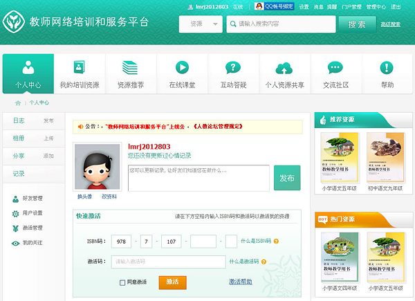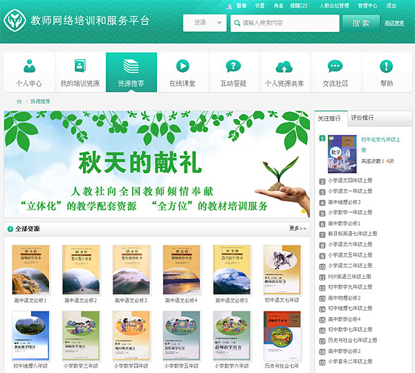 金秋9月,又逢一年开学季。人民教育出版社按照教育部新课程标准编写的第11套教科书在众人的期盼中全新亮相。很多拿到人教版教师教学用书的老师惊喜地发现,今年的书和往年大为不同──不仅内容更加丰富了,而且封底多了一个网址(px.pep.com.cn)和一个带防伪功能的激活码。这就是人民教育出版社全新打造的“教师网络培训和服务平台”,该平台于2012年9月3日正式上线公测。从今年起,所有选用人教版教师教学用书的用户都可以登录此网站,免费使用各种最新的权威资源,享受全方位的服务。