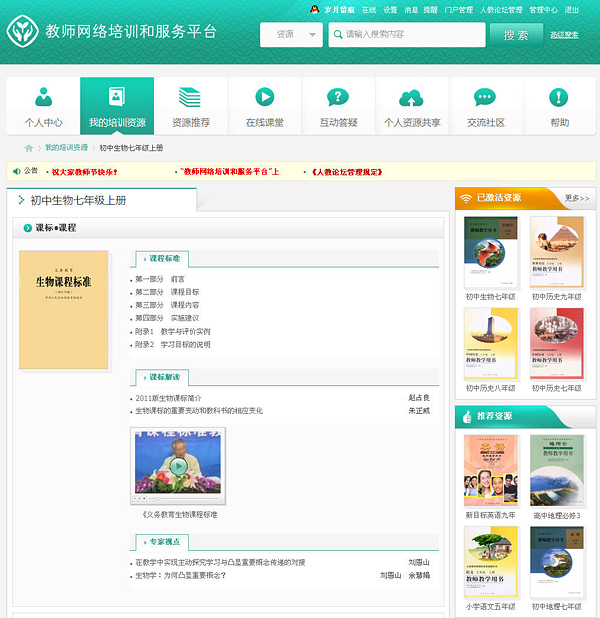 根据教育部2011年版的课程标准和一线教学的实际需求,人教社依靠自身的品牌优势、资源优势,组织教材编写专家和教研人员,精心打造“精、准、新”的教材培训资源。从课标解读到课程研究,从教材解析到教学示范,从资料分享到实践交流……平台围绕“课程、教材、教学、专业成长”等多个维度,为教师提供优质的教育资源,帮助教师创新教学解决方案。