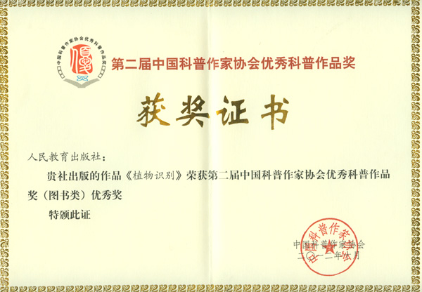 10月10日,第二届科普作家协会优秀科普作品奖颁奖典礼在北京科协会堂隆重举行。本届评选共有27种科普图书获优秀奖,48种图书获提名奖。人教社综合理科编辑室编辑出版的《植物的识别》一书,在300多家出版社选送参评的600多种1000多册图书中脱颖而出,获得科普图书类优秀奖。