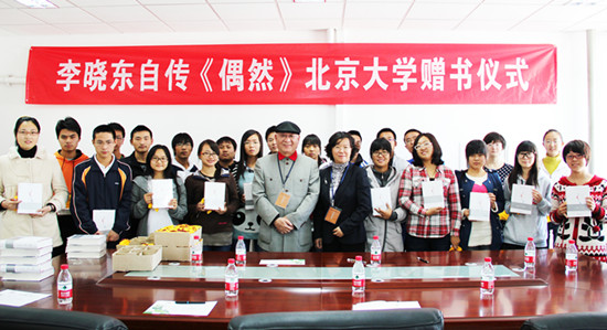 2012年10月24日上午,李晓东自传《偶然》北大赠书仪式在北京大学出版社大楼成功举办。北京大学名誉校董、新太阳地产集团有限公司董事长李晓东,新太阳地产集团副总裁黄夷美,北京大学出版社总编辑张黎明,北京大学学生资助中心主任杨爱民出席仪式。北京大学学生服务总队队员代表30人参加活动。