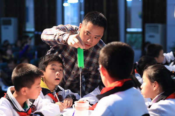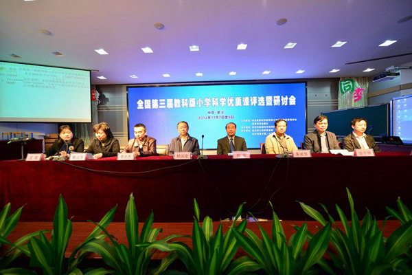 11月7—9日,由中央教育科学研究所小学科学教育研究中心和教育科学出版社主办的以“探索儿童的科学”为主题的第三届教科版小学科学优质课评选暨研讨会在武汉市育才第二小学举行。教育科学出版社郑军副总编辑、教材中心王薇主任、市场部田卫彬副主任,湖北省教研室杨国金副主任、武汉市教科院朱长华副院长、武汉市教科院教研室李光杰副主任、武汉市江岸区教育局黄运萍副局长和武汉市育才二小徐宇珊校长出席了开幕式。郑军副总编辑、杨国金副主任和黄运萍副局长在开幕式上致辞。 来自26个省(自治区、直辖市)的教研员、科学课教师400人参加了本次会议。本次研讨会没有采取以往以“课”为单位进行展示研讨的方法,而是由点到面首次进行了以“单元”为单位组织研讨的新尝试。来自哈尔滨、北京、天津、苏州、杭州、武汉、重庆、深圳的8位骨干教师及教研员与育才二小五年四班的52名学生共同经历了完整的“沉和浮”主题的教学活动,与会代表就如何在大单元的教学中,从“儿童的科学”的角度设计教学活动,促进学生科学概念和科学探究能力的同步发展展开了热烈的讨论。会议期间还展示了数字出版中心制作的“沉和浮”单元的电子读本。