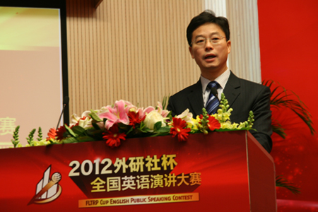 12月3日上午8时,2012“外研社杯”全国英语演讲大赛决赛正式拉开帷幕。教育部国际合作与交流司副司长杨军出席开幕式并发言。