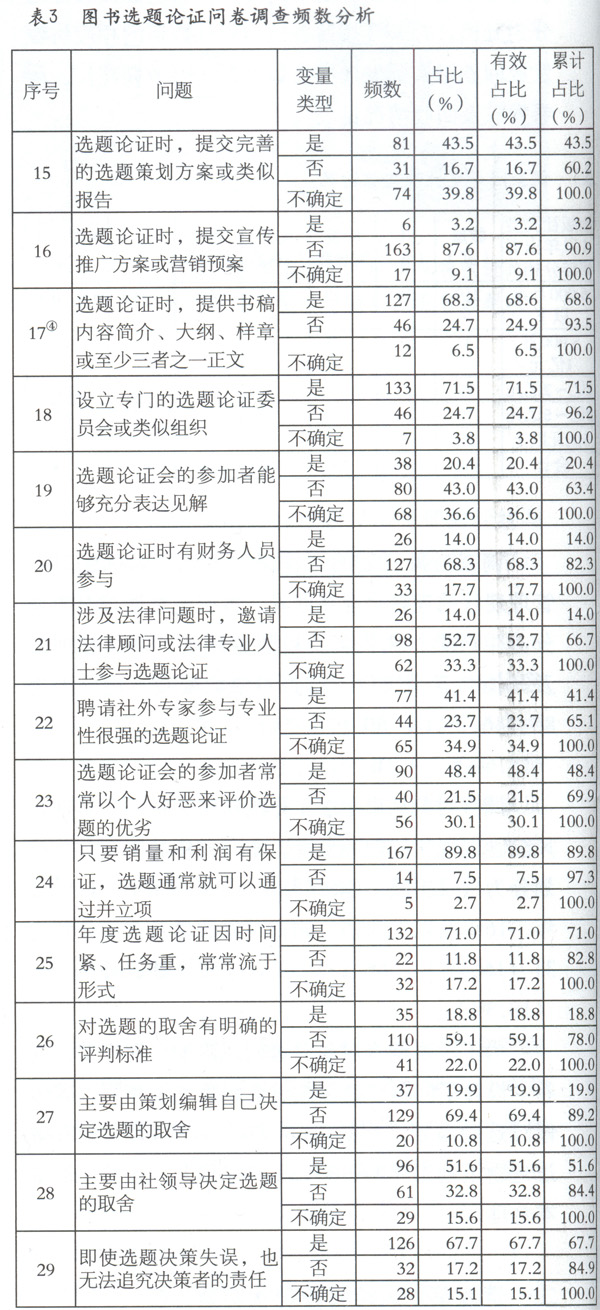 本问卷针对图书选题论证设计了15个问题(问题15~问题29)。
