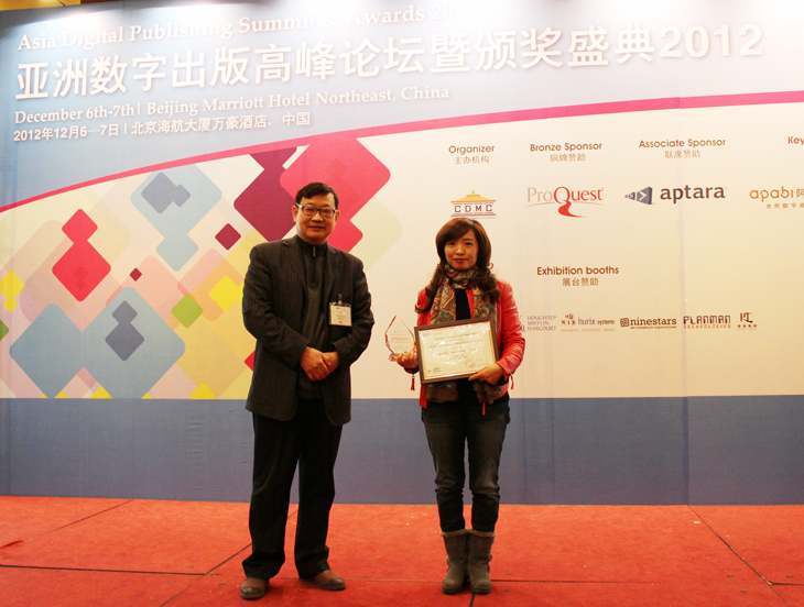 2012年12月7日,首届“亚洲数字出版高峰论坛暨颁奖盛典2012”在北京隆重举行。 西南财经大学出版社副社长谢廖斌和数字出版部主任王正好受邀出席了该论坛,并在参会期间同国内外领先的行业内容资源提供商、技术服务提供商等进行了广泛交流和专业探讨。 本次颁奖盛典设置了“年度最受欢迎数字出版单位”、“年度最具发展潜力数字出版企业”、“年度最佳全流程解决方案提供商”、“年度创新技术奖”和“年度最佳产品开发奖”等八个奖项,经过CDMC组委会和专家委员会一致评选后,西南财经大学出版社荣获其中之一“2012年最受欢迎数字出版单位”的殊荣。谢廖斌副社长上台领奖并作了获奖感言,她表示,能够从众多出版社中脱引而出获得这个奖项,对于西南财经大学出版社是荣誉更是一种激励,希望明年能够用更优质的产品和服务来回馈社会。来源:西南财经大学出版社