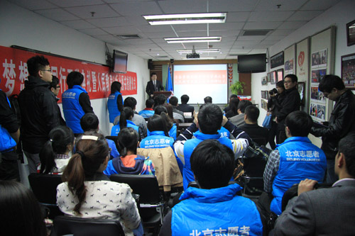 4月21日,“青春梦想同龄同行”志愿服务项目培训班开学典礼在北京正式举行。共青团北京市委副书记熊卓、人民教育出版社党委书记郭戈、北京市志愿服务指导中心主任郭新保,十八大代表、北京致诚律师事务所主任、北京青春梦想同龄同行志愿者协会会长佟丽华、人民教育出版社英语编辑室主任吴欣等出席活动。青春梦想同龄同行项目学员代表、志愿者代表、媒体记者60余人参加了活动。