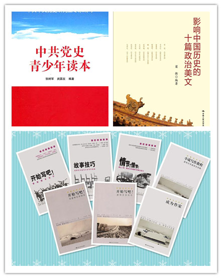 国家新闻出版广电总局2013年“向全国青少年推荐百种优秀图书”活动评选结束,中国人民大学出版社共3种图书入选,分别是《中共党史青少年读本》、《影响中国历史的十篇政治美文》、《创意写作书系》(7册)。