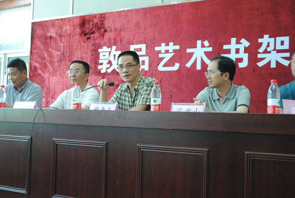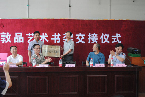 2013年5月22日,中国美术学院出版社副社长祝平凡,中国美术学院专业基础教学部图像与媒体分部主任、副教授王晓明等一行前往湖州市第一中学出席“敦品艺术书架交接仪式”。湖州市委宣传部副部长沈宝山,湖州市教育局副局长金毅伟,湖州一中钱月新校长、校党总支书记韩兵、陈立林副校长、蔡志远副校长等出席了仪式。由浙江省委宣传部与中国美术学院联合举办的“敦品艺术书架”进校园活动将在省内11个地市陆续展开,此行是本次系列活动的第一站。