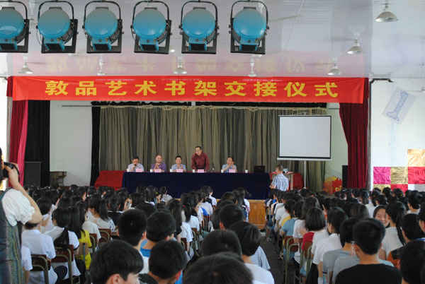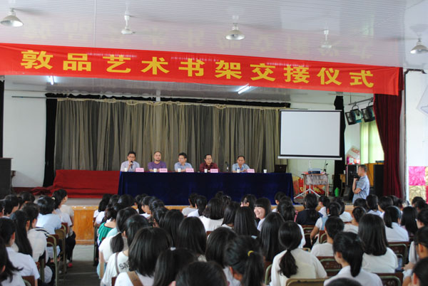 2013年5月24日,中国美术学院出版社社长曹增节,中国美术学院专业基础教学部图像与媒体分部主任、副教授王晓明等一行前往丽水市第二高级中学出席“敦品艺术书架交接仪式”。丽水市委宣传部副部长李志伟,丽水第二高级中学副校长陈仕恩等出席此次仪式。