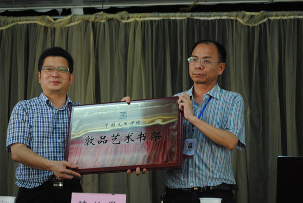 曹增节社长在会上致辞。他表示,在物欲横流的年代,如何坚守中国人的精神家园,提升全民文化素养是出版行业和学校所应当思考和承担的问题和责任,此次“敦品艺术书架”走进校园的活动正是以此为目标所进行的探索和实践。会上,中国美术学院出版社向校方赠予“敦品艺术书架”牌匾和500册出版社历年精品艺术书籍,主要包括著名艺术家画册、美术理论专著、中国美术学院艺术创作以及创意设计成果等四部分内容。
