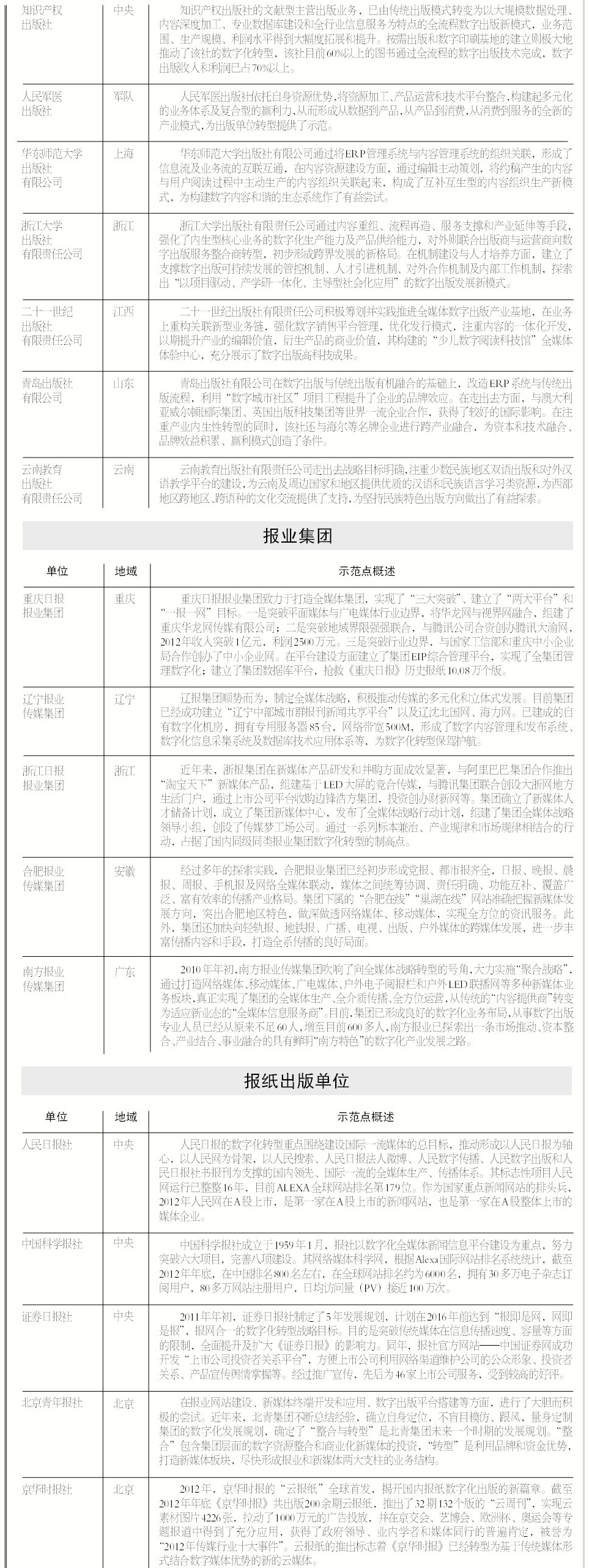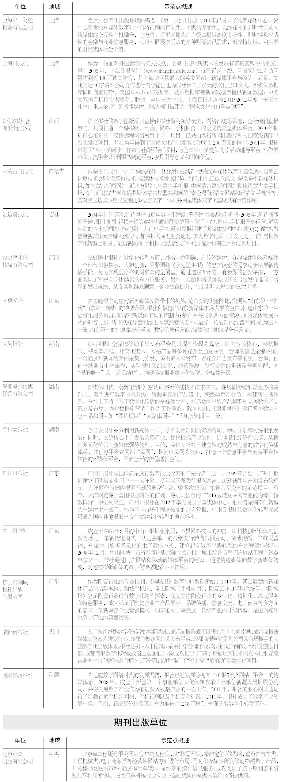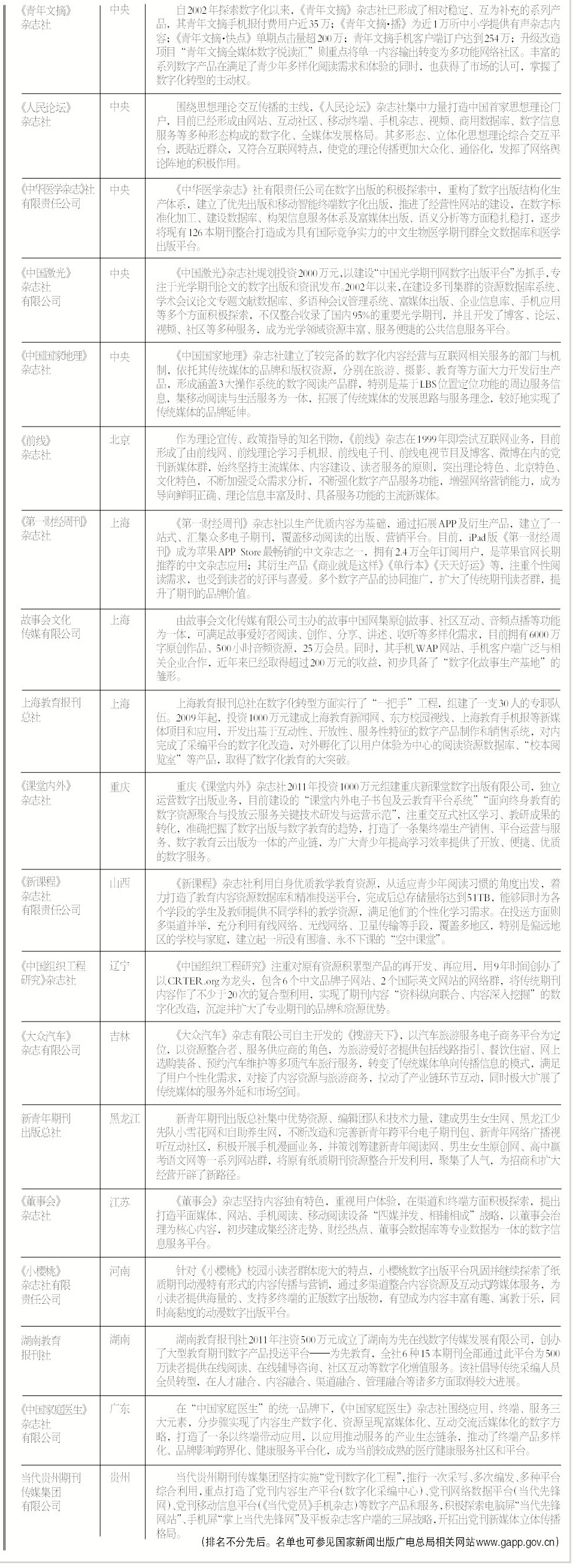 2013年数字出版转型示范单位公示