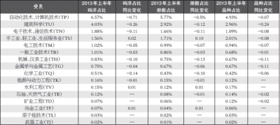 表2 工业技术类下各细分类别图书馆配份额与2012年同期对比