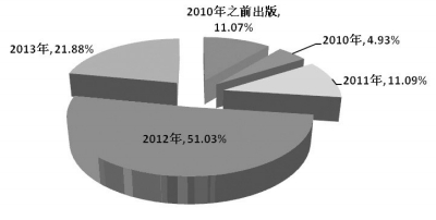 图2 2013年上半年各年份出版图书码洋分布