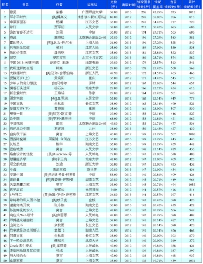 表8 2013年上半年整体书目排行(TOP50)