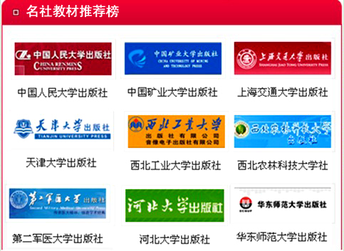 (五)名社教材推荐榜 “名社教材推荐榜”栏目首页面中显示参展出版社的社标,链接到参展的图书。保留一个月。