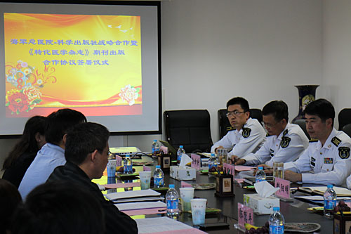 2013年9月24下午,中国科技出版传媒股份有限公司(科学出版社)与海军总医院签署了军民融合式战略合作暨《转化医学杂志》期刊出版合作协议。中国科技出版传媒股份有限公司彭斌副总经理受林鹏董事长委托,与海军总医院钱阳明院长分别代表双方在协议上签字。
