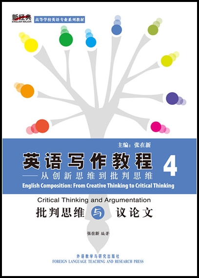 《批判思维与议论文》是《英语写作教程——从创新思维到批判思维》(1-4册)系列中的第四册。本系列教材根据北京外国语大学英语学院多年来写作教学的经验和研究成果编写而成。教材遵循通过思维训练来学习写作的全新理念,打破了英语写作教学中纯粹学习语言和结构的传统模式。第四册《批判思维与议论文》的内容包括批判思维和议论文的基础知识,通过讨论和练习提高学习者的逻辑思辨能力和论据分析能力,以便增强其写作的说服力。写作练习有广告分析、逻辑错误分析、事实议论文、价值议论文、政策议论文等。结合议论文论据援引的特点,教材还简要介绍了美国现代语言学会(MLA)关于文献引用的要求和格式。