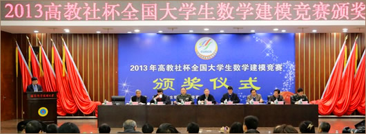 2013年12月7日,由全国大学生数学建模竞赛组委会主办的“2013高教社杯全国大学生数学建模竞赛颁奖仪式”在国防科学技术大学举行。全国大学生数学建模竞赛组委会主任、复旦大学李大潜院士,中国高等教育学会会长瞿振元,国防科学技术大学教育长曾淳,全国大学生数学建模竞赛组委会副主任陈叔平,高教社副总编辑林金安,以及来自全国各赛区的教师和学生代表130余人参加了颁奖仪式。