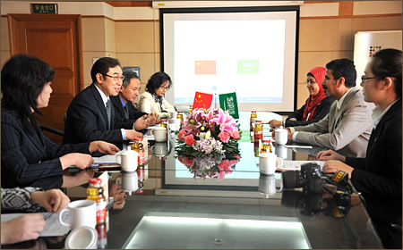 2013年12月19日,沙特阿拉伯王国驻华大使馆文化参赞萨利赫•古苏米博士一行3人来高教社进行交流访问,并签署双方合作谅解备忘录。高教社社长苏雨恒、副总编辑查卫平在高教社马甸总部会见了萨利赫•古苏米博士一行。海外合作部总经理刘轩、高等教育文科出版事业部总经理汤悦、社会学习出版事业部副总经理吴勇、人文社科学术出版事业部、外语和国际汉语出版事业部有关同志参加会见。